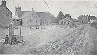 One of the earliest buildings to survive within the village is Hanson House.[6] This is set back from the church and has a timber-frame construction. The building was constructed in the mid-15th century, with a later wing added in the 18th century. A fire has damaged the building, which is being restored and modernised.