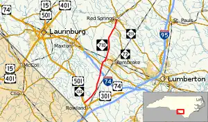 North Carolina Highway 710 (NC 710) is a primary state highway in the U.S. state of North Carolina. It connects the town of Pembroke to Interstate 74 (I-74) and U.S. Route 74 (US 74) and the nearby towns of Red Springs and Rowland.