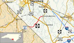 North Carolina Highway 83 (NC 83) is a primary state highway in the U.S. state of North Carolina. It serves to connect the towns of Maxton and Clio, South Carolina.