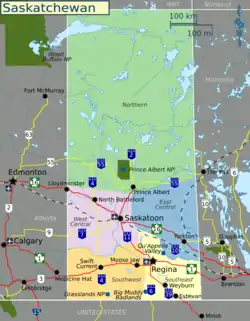 Regions of Saskatchewan map used on Wikivoyage.