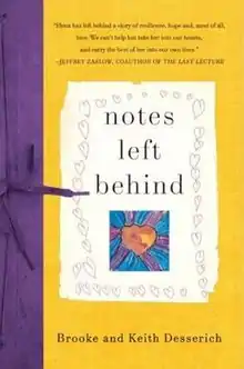 Notes Left Behind is a 2009 non-fiction book by Keith and Brooke Desserich, the parents of a six-year-old girl named Elena who died of cancer. The book is a publication of some of the hundreds of notes Elena left for her parents to find after her death. It follows Elena's battle against brain cancer.