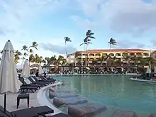 Facilities include five swimming pools, six restaurants, eight bars, one casino, a spa, Kids Club, Teens Club, gym and exercise center, Internet Lounge, basketball courts, two tennis courts, volleyball courts on the pool and beach, bowling lanes, life-size chess games at the pool, conference and banquet facilities for up to 700 people, dry cleaning & laundry facilities, and lounge chairs available at the beach and pools.[1]