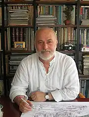 Nusret Çolpan (October 1, 1952 – May 31, 2008) was a Turkish painter, architect and miniaturist, renowned for his paintings in Ottoman miniature style depicting cities around the world, particularly Istanbul. He painted over 300 miniatures in his 30-year career.