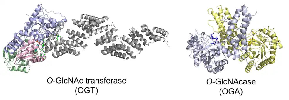 - ↑ Kreppel, L. K.; Hart, G. W. (1999-11-05). "Regulation of a cytosolic and nuclear O-GlcNAc transferase. Role of the tetratricopeptide repeats". Journal of Biological Chemistry. 274 (45): 32015–32022. doi:10.1074/jbc.274.45.32015. ISSN 0021-9258. PMID 10542233.