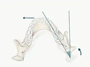A deflective contact is a contact that diverts the mandible from its intended movement.[12] An example of this is when the mandible is deflected into ICP by the RCP-ICP slide, which path is determined by the deflective tooth contacts. This is often involved in function (e.g. chewing), however in some cases these deflective contacts can be damaging and may lead to pain around the tooth (often associated with bruxism).[21] However, some patients may be totally unaware of similar deflective contacts suggesting that it is the patient's adaptability rather than the contact that may influence the patient's presentation.