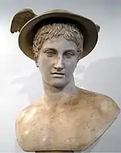 Hermes is one of the Twelve Olympians, herald of the gods, protector of human heralds, travelers, thieves, merchants, and orators. He appears three times in the Odyssey. The first time is to deliver a message to Calypso to let Odysseus return home. The second time, he appears to Odysseus to warn him about Circe and provides the necessary information that Odysseus needed to put Circe into submission. The third time he is sent to escort the spirits of the suitors from the halls of Odysseus's home to the underworld. Hermes is the great-grandfather of Odysseus.[1]