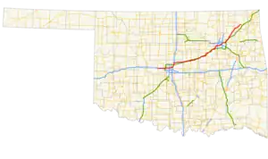 - 1 2 3 4 5 6 7 Official State Map (PDF) (Map) (2009–10 ed.). Oklahoma Department of Transportation. Retrieved 2010-05-06.