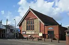 In 1819, a new chest was acquired to store the important civic documents which included royal charter signed by Edward VI.[3] By the 1840s, the assembly room was being used as a school room,[4] but, by the early 1860s, the building had become very dilapidated and was disused.[5][6][7] The building was remodelled in 1876, with the timber framing on the first floor being replaced by a red brick structure and a prominent four-part, slightly projecting, Tudor Revival style window being installed at the south end. The main frontage was fenestrated by two bi-partite casement windows.[1]