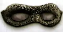 In the second half of season two, Oliver replaces his "painted" mask with a domino mask gifted to him by Barry, similar to one worn by the character in the comics.[11] The change is addressed on-screen, with Kreisberg saying, "He doesn't just put on a mask. It's actually a big plot point in an episode, and there really is a story behind, not only the need for the mask but also who provides him with it."[63] On adding the mask now, Kreisberg stated that, "Conceptually, it was something we wanted to do because Oliver himself is evolving as the Arrow—from vigilante to hero, sort of from Arrow to Green Arrow—and we wanted to see that progression in his costume as well. As Oliver is embracing being a hero, being a hero means stepping out of the dark and being more of a symbol, so he has to take steps to conceal his identity more."[63] He added that it will "allow the Arrow to interact with people who don't know his identity in a much more organic way than having him constantly keep his head down."[63] Costume designer Maya Mani put together roughly 50 mask options for the producers. Various designs reminded the creative team of something Joel Schumacher would create. Kreisberg said, "What's so wonderful about the design that Maya came up with is that it really is very simple, and it feels as if it's been part of his costume since the beginning...once we finally had this mask and put it on Stephen [Amell], even Stephen was like, 'This is the right one.'"[63]