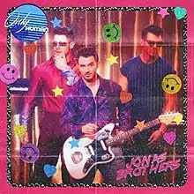 An accompanying music video was uploaded to Jonas Brothers' official YouTube channel on August 13, 2019. The '80s-themed video was directed by Anthony Mandler and produced by Kim Bradshaw of Black Hand Cinema.[39][40] The music video was filmed in New York.[5] The visual opens inside a nightclub having a giant disco-ball and ceramic horse statues where the Jonas Brothers are performing on stage wearing opaque sunglasses and colourful retro outfits alongside professional ladder dancer Declan McDonough.[40][41][42] They are surrounded by a crowd of enthusiastic club-goers who are "head-bopping", "finger-snapping" and singing along to the group.[1] The clip is interspersed with grainy footage of the group playing with rotary telephones and synchronized dancing of the audience beneath the neon disco lights.[6] Over the course of the video, the brothers and the crowd take to the streets where Joe Jonas dances and sings, standing on top of a vintage yellow NYC taxi.[40][6][43] The entire video alternates between filmy, hazy filtered shots at the club and the street.[1] The final scene sees the driver of the cab shouting at them for blocking the traffic.[41] Katrina Rees of Celemix praised the video's "nostalgic take on a classic era" which she felt "fit[ted] in perfectly with the old school vibe of the song."[43]