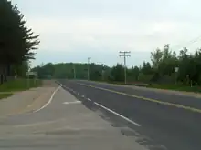 In 1952, the southern 17.8 kilometres (11.1 mi) of the route, along the east side of Lake Couchiching via what is now Simcoe County Road 44, was transferred to local municipalities and a new, longer route was designated to the east, merging with Highway 12 north of Brechin.[8][9] This routing remained in place until May 15 1976, when the province redirected the southern portion of Highway 69 along the route of Highway 103, between Waubaushene and Foot's Bay, in order to create a more direct route between Toronto and Sudbury. The route of Highway 69 between Foot's Bay and Brechin was consequently renumbered as Highway 169.[2]