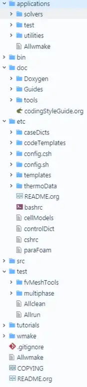 OpenFOAM-<version>: OpenFOAM libraries whose directory layout is shown in the side-figureThirdParty: A set of third-party libraries