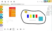 Since version beta 1.3.0 the Open Roberta Lab also offers a simulation environment. This is a simulation of a two-dimensional robot model equipped with two wheels (differential drive). To program the simulated robot also the programming language NEPO may be used. The simulated 2D model includes the simulation of an ultrasonic sensor, a touch sensor, a color sensor and the display of an LED. In addition, different environments can be chosen. Since version beta 1.4.0 NEPO blocks can be used without any changes for the 2D-Simulation and the real robot.