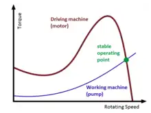 Unstable operating point of an engine consisting of drive (AC motor) and working machine (pump)