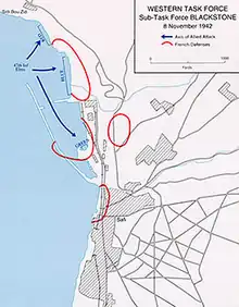 Safi surrendered on the afternoon of 8 November, but sporadic resistance continued until 10 November when the remaining defenders were pinned down and the bulk of Harmon's forces raced to join the siege of Casablanca.[2][3]