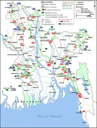 The border areas around East Pakistan was divided into six logistical sectors, each to be commanded by a brigadier from the Indian Army.[17]