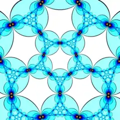In the geometry of hyperbolic 3-space, the infinite-order icosahedral honeycomb is a regular space-filling tessellation (or honeycomb) with Schläfli symbol {3,5,∞}. It has infinitely many icosahedra, {3,5}, around each edge. All vertices are ultra-ideal (existing beyond the ideal boundary) with infinitely many icosahedra existing around each vertex in an infinite-order triangular tiling vertex arrangement.