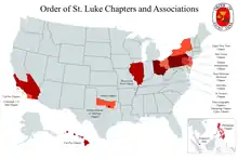 The Order of St. Luke maintains 15 active chapters and associations. While most are geographic, two chapters conduct meeting and business primarily or solely online. Chapters are led by chapter Priors and appointed officers.