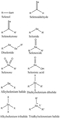 - ↑ Comasseto, J (1983). "Vinylic selenides". Journal of Organometallic Chemistry. 253 (2): 131–181. doi:10.1016/0022-328X(83)80118-1.