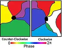 Using 2D optical techniques, pinwheel formations (also known as whorls) of orientation columns were discovered. Pinwheels are the location where multiple orientation columns converge. Orientation columns are organized radially around a point known as a singularity. The arrangement, around the singularity, can be observed to be in both a counter-clockwise or clockwise fashion.[11] It is suggested that an artifact of the optical recordings may cause these singularities. Limitations in the resolution of the optical technique may be to explain for these singularities.[4]