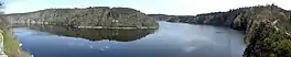 The Orlík Reservoir (Czech: Vodní nádrž Orlík) is the largest hydroelectric dam in the Czech Republic. It dams the Vltava River near the village of Solenice, which is near the town of Příbram. The structure is named after Orlík Castle, which is situated a few kilometers above the dam. The dam has four turbines with a nominal capacity of 91 MW each[1] having a total capacity of 364 MW.