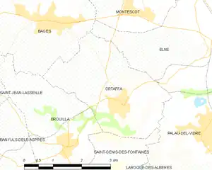 Map of Ortaffa and its surrounding communes