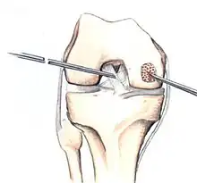 - ↑ Bradley J, Dandy DJ (August 1989). "Results of drilling osteochondritis dissecans before skeletal maturity". The Journal of Bone and Joint Surgery. British Volume. 71 (4): 642–4. doi:10.1302/0301-620X.71B4.2768313. PMID 2768313.