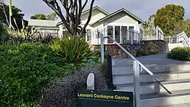 The Visitor Centre provides information about New Zealand's flora (and fauna), and Otari – Wilton's Bush. It is open 8am–4pm daily. In December 2021, the Visitor Centre was reopened after a two month closure for renovations, and was renamed: 'Tāne Whakapiripiri'.[14] There are displays and information for visiting groups, and a small lecture room that is available for educational purposes. The Leonard Cockayne Centre is a seminar and function room located in a stand-alone building adjacent to the Leonard Cockayne memorial lawn.[15]