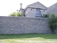 The Nicholas Street Gaol was the main jail of Ottawa for over a century. The structure was built in 1862 next door to the courthouse, and connected by a tunnel. Designed by Henry Horsey, the jail was the site of the hanging of Patrick J. Whelan on February 11, 1869, for the assassination of Thomas D'Arcy McGee. Over 5,000 people witnessed Whelan's hanging, which was a large number considering the size of Ottawa at the time.[4] Staff and guests have reported that Whelan's spirit is one of many that haunts the hostel and will appear at the end of guests' beds or in his death-row cell.[5][6] The third (official) and final execution at the jail took place on March 27, 1946, when Eugène Larment, who had killed an Ottawa police detective, was hanged. The building remained in use as a jail until 1972 when the outdated facility was closed. The original gallows, however, are intact and remain fully functional. While open, the jail inflicted very inhumane conditions upon those imprisoned there and modern day excavations of the property have revealed numerous unmarked graves.[7] Up to 150 prisoners, consisting of men, women, and children, would be forced to share 60 small cells (1x3 meters) and 30 larger cells (2x3 meters); as well as six solitary confinement units. Inmates included murderers, the mentally ill, or those incarcerated for minor infractions such as drunk and disorderly conduct.