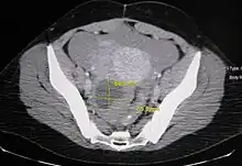 - ↑ Sahin, Hilal; Abdullazade, Samir; Sanci, Muzaffer (April 2017). "Mature cystic teratoma of the ovary: a cutting edge overview on imaging features". Insights into Imaging. 8 (2): 227–241. doi:10.1007/s13244-016-0539-9. PMC 5359144. PMID 28105559.
