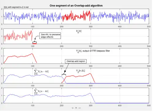 In signal processing, the overlap–add method is an efficient way to evaluate the discrete convolution of a very long signal with a finite impulse response (FIR) filter :