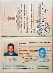 - ↑ "Consulate General of India, San Francisco, California : OCI (Overseas Citizenship of India) cards". www.cgisf.gov.in. Retrieved 2019-12-18.