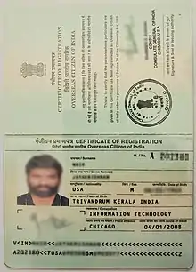 - ↑ "OCI". passport.gov.in. Government of India. Retrieved 21 April 2017.