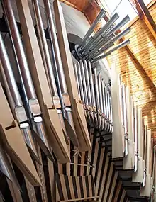 The next important project was the clearing of the grand organ of Matthias Church in Buda Castle, Budapest, Hungary. They also built a smaller organ for the church near the main organ in 2010. It was a real innovation as the grand organ was connected to the small one and both could be played together and also separately.[1][8][4]
