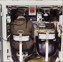 The commander (left) and gunner's (right) positions in a Dutch Cheetah PRTL. Each crewmember has their own optical periscope and share a single, centre-mounted display for the surveillance radar.