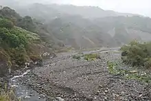 Both climates are humid, receiving large quantities of moist air from the Gulf,[2] with the municipalities one of the most moist areas in the Sierra Norte of Puebla.[4] The steep terrain and wet weather of the area makes its prone to landslides and the opening of cracks in the ground.[18] In 1999, a twenty-meter fissure opened after a period of rain.[20] In 2007, a fault line opened in the ground for 800 meters from the municipal palace to Leandro Valle Schools, provoking several landslides and mandatory evacuations of over eighty families.[18] About four tons of earth and debris moved as a result.[20]