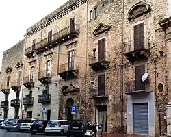 This imposing palace was built in 1629 by the nobleman Salvatore Rocca and was completed by Vincenzo Rocca.[1] It is considered one of the most important buildings in Alcamo. Today, part of it is used as a clergy house of the Church of Saints Paul and Bartholomew and orphanage, and another part as a residential building.[2]