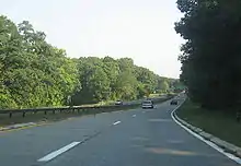 The mainline of the parkway is designated as Route 445 in New Jersey and NY 987C in New York. The latter is one of New York's reference routes.[1][2] A 0.42-mile (0.68 km) spur connecting the parkway to US 9W in Fort Lee, New Jersey, is designated Route 445S.[6] All three designations are unsigned and used only for inventory purposes. The parkway is owned and maintained by the Palisades Interstate Park Commission but occasional maintenance is performed by the New Jersey and New York state departments of transportation.[7][8] Commercial vehicles are prohibited on the entire length of the Palisades Interstate Parkway.[4][5] The speed limit on the highway used to be 50 mph (80 km/h) south of the New York State Thruway and 55 mph (89 km/h) north of it. As of October 2018, it is 55 mph for the entire length.[9]