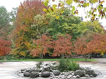Smaller flower gardens are scattered throughout the park; there is a garden to show varieties of the azalea; a large garden showcasing the rhododendron; a garden of ferns; gardens for irises and dahlias; a garden and pavilion for medicinal plants and culinary herbs; a garden for varieties of cactus; a garden of plants from the Mediterranean regions; and a large pavilion for displaying Japanese bonsai plants. There is also one garden, the jardin des Quatres-Saisons (Garden of the seasons) where flowers are in bloom year-round.[5]
