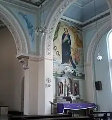 In 1881, there was a change in the church, when, due to the insistence of Canon Sisenando da Cruz Dias, the presbytery was built, lined, floored, and made of bricks.[25] Later, the new vicar, Father Casimiro Andrzejewski, described the church in 1897 as follows: "The church had the appearance of a neighborhood chapel. It was made of clay, leaned on the north side by two beams so it wouldn't fall over, covered with tiles without a lining and with many leaks that made the floor rot, becoming soft and elastic from old age. The presbytery was recently built, with little light, very low, as it is now".[26] Subsequently in the same text the priest continues with notes on particular episodes about the people of the region. About the church, he continued with his memories, stating that: "The Church of the Christ Child idealized by Carvalhais centuries ago, trying to be built by Bernardo Paes, still suffered. Only later Father Ernesto Alberini by the 1920s, increased the lateral spaces, being followed still by his successor Father José Kramer that in the 1930s built the three naves and the Diocesan Bishop, when passing through Piraí do Sul, noted '...architectural defects in its interior hindering the altar'."[27]