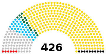 The 11th Parliament (2021–2026) has a total of 557 seats, including 353 representatives elected using first-past-the-post voting in single winner constituencies. Using the same method, 146 seats reserved for women are filled, with one seat per district. Finally, 30 seats are indirectly filled via special electoral colleges: 10 by the army, 5 by youths, 5 by elders, 5 by unions, 5 by people with disabilities and 28 Ex Officio Members. In each of these groups, at least one woman must be elected (at least two for the army group).[3][4][5][6]