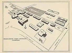 The school was first established as a district school in 1884 and became Pasadena High School in 1891.[1] In 1928, the school merged into Pasadena Junior College and operated as a four-year school, grades 11, 12, 13 and 14. Pasadena realigned its 6-4-4 school system in 1954 with Pasadena High School regaining its separate identity. PHS, however, shared the Pasadena City College Colorado Boulevard campus through the graduating class of 1960 when PHS moved to its present campus on Sierra Madre Boulevard at Washington Boulevard.