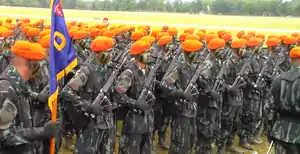 The Kopasgat (Indonesian: Komando Pasukan Gerak Cepat, Quick Reaction Forces Command[1]) is the air force infantry and special forces corps of the Indonesian Air Force. The corps is also known as the Orange Berets (Baret Jingga in Indonesian) from the colour of their service headgear. Kopasgat is trained to seize and defend airfields from enemy forces known as Operasi Pembentukan dan Pengoperasian Pangkalan Udara Depan (OP 3 UD) (Frontline Air Base Establishment and Management Operation), airborne operations, and other specific military operations within the scope of the Indonesian Air Force.