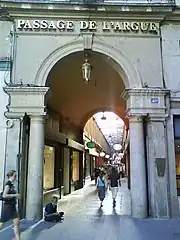 According to some sources, two thirds of the shops were rented before the arcade opened.[2] The Passage de l'Argue was considered a "regeneration" for the quarter,[9] and to have the same "charm" as the Parisian arcades.[2] One author described such arcades as "a place of refuge, for walking on winter evenings and rainy days, and thus an embellishment as well as a convenience for the entire population of the city".[25]