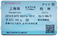 The majority of train tickets in China are thermally printed paper tickets displaying the train's origin and destination, service number, price, date and travel time, accommodation type, class and seat number, as well as a barcode for security checks. Some tickets on the CRH routes such as Nanjing–Shanghai–Hangzhou or Guangzhou–Shenzhen use machine-readable tickets i.e. tickets on the Nanjing–Shanghai route have a magnetically encoded stripe for future use of automatic ticket inspection gates being implemented at major stations along the route, whilst tickets on the Guangzhou–Shenzhen line have embedded RFID microchips which can be read by proximity readers mounted above the ticket gates.