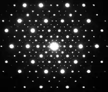 - ↑ Lu, P.; Deffreyes, K.; Steinhardt, P.J.; Yao (2001). "Identifying and Indexing Icosahedral Quasicrystals from Powder Diffraction Patterns". Phys. Rev. Lett. 87 (27): 275507. arXiv:cond-mat/0108259. Bibcode:2001PhRvL..87A5507L. doi:10.1103/PhysRevLett.87.275507. PMID 11800896. S2CID 2814118.