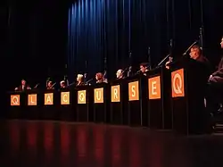 Following two failed leadership runs in 1985 and 2005, Marois briefly left political life in 2006. A year later, she stood unopposed to become the seventh leader of the Parti Québécois on June 26, 2007. From 2008 to 2012, she served as leader of the Official Opposition. In spite of internal strife in 2011 and early 2012, where she survived several challenges to her leadership from prominent members of her caucus – earning her the nickname Dame de béton,[9] "Concrete Lady" – she led the Parti Québécois to victory with a minority government in the 2012 Quebec general election, thus becoming the first female premier in the province's history.[10] As Premier, Marois closed down Quebec's only nuclear reactor, ended asbestos production in Quebec, and pacified the province's turbulent campuses. Her government's highest profile initiative was the proposal of a controversial Quebec Charter of Values which would have banned the province's 600,000 government employees from wearing religious symbols including turbans, Islamic veils and Jewish kippahs.[8] However, the crucifix (notably, the one hung by above the speaker's chair in the provincial legislature) would not have been banned under the Quebec Charter of Values.[11] Her party was defeated 19 months later in the 2014 Quebec general election, an election that she herself had called.[12] Marois was personally defeated in the riding of Charlevoix–Côte-de-Beaupré and announced thereafter her resignation as PQ leader.[13][14] Her electoral defeat marked the shortest stay of any Quebec provincial government since the Canadian Confederation and the lowest showing for the PQ since its first general election in 1970.[15][16]