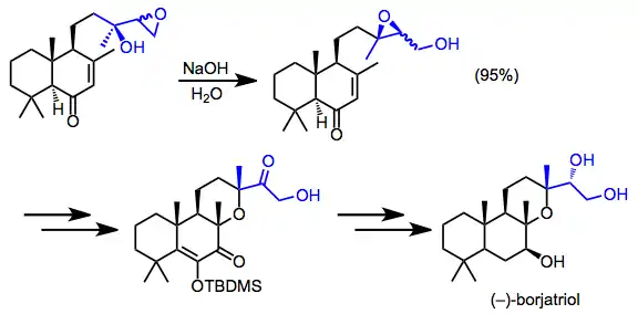 The synthesis of borjatriol involved the rare isolation of a migrated epoxide. The diastereomeric mixture of rearrangement products was carried through the remainder of the synthesis.[16]
