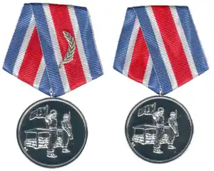 The medal commemorates the 1988 Nobel Peace Prize given to United Nations Department of Peacekeeping Operations personnel.[2] Persons who have been deployed with the UN before 1988 may attach a silver laurel branch to the ribbon of the medal.[3]