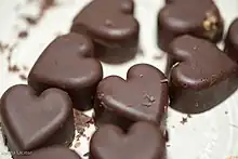 A peanut butter cup is a molded chocolate with a peanut butter filling. Peanut butter cups are one of the most popular kinds of candy in America.[1] They can be made at home,[2] but like most candies, they are commonly mass-produced. They may also be available in candy shops, produced by local or regional candymakers.